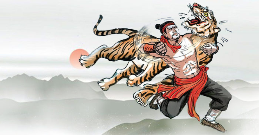 Truyền rằng vì nhà nghèo nên từ thuở nhỏ Mai Thúc Loan đã phải làm việc giúp cha mẹ đỡ đần việc nhà. Một lần Mai Thúc Loan cùng mẹ vào rừng kiếm củi, bất ngờ có một con hổ lớn lông vàng chồm ra ngoạm lấy cổ bà mẹ định tha đi. Cậu bé họ Mai nghe tiếng thét của mẹ liền lao đến dang tay chém mạnh một nhát rìu vào đầu hổ, con hổ dữ tuy bị chém đòn chí mạng phải buông mồi nhưng vẫn nhảy tới tát mạnh vào kẻ tấn công. Mai Thúc Loan nhanh nhẹn tránh được rồi dồn sức dùng rìu chém tiếp một nhát, con hổ bạt vía cụp đuôi bỏ chạy vào rừng với vệt máu từ vết thương lớn trên người.